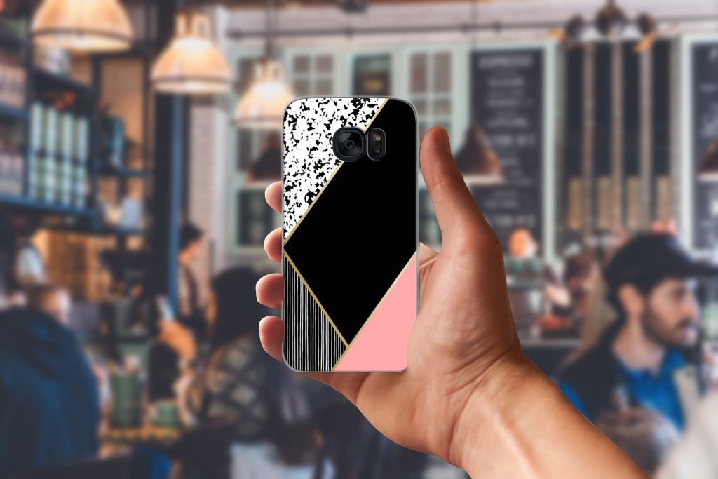 TPU Hoesje Samsung Galaxy S7 Zwart Roze Vormen Design