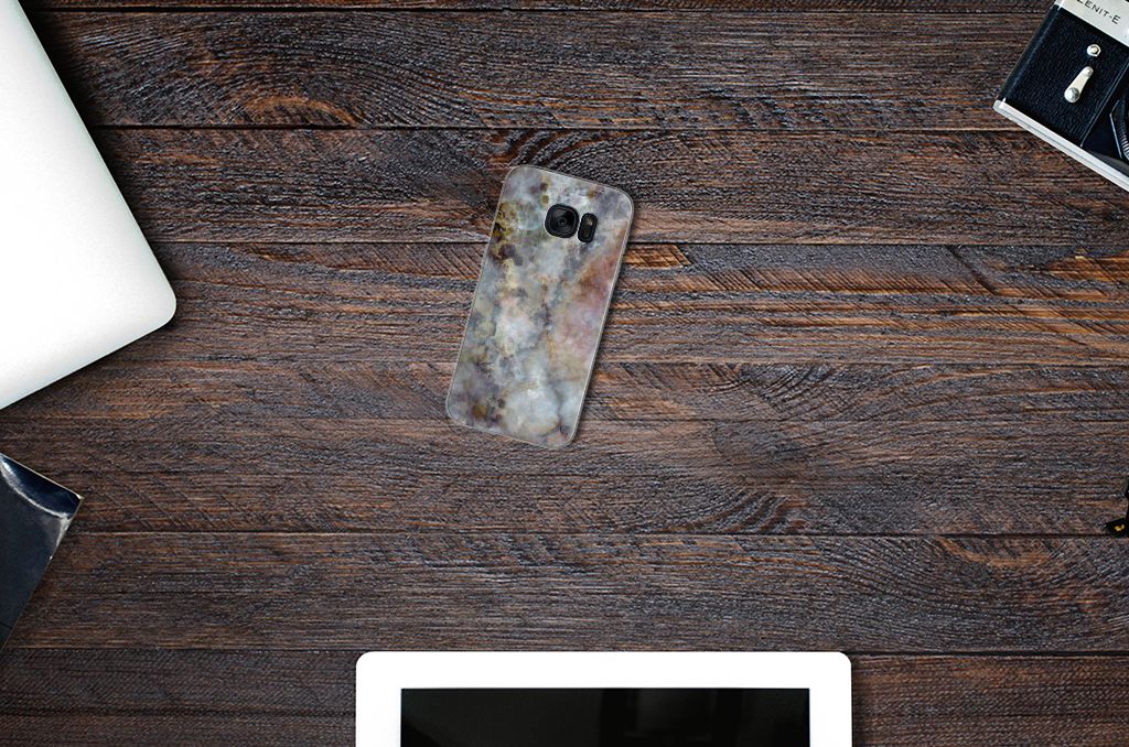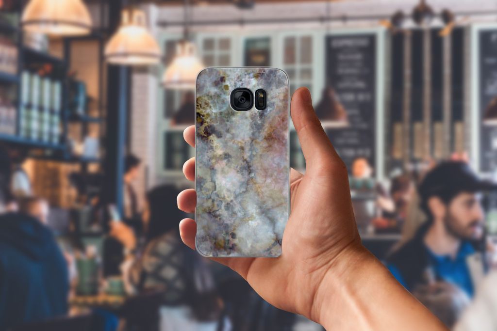 Deze Samsung Galaxy S7 TPU Siliconen Hoesje met Deze Samsung Galaxy S7 TPU Siliconen Hoesje met marmer grijs is geen doorsnee product, maar onderscheidend in alle opzichten. Marmer is een zeer gewaardeerd bouwmateriaal, dit gaat zelfs terug tot de Romeinen, waardoor dit ook een symbolische waarde heeft op dit hoesje. Het tpu hoesje in een grijze kleur beschikt over alle uitsparingen die je nodig hebt en is gemaakt van zeer flexibel en schokabsorberend materiaal. De case wordt aan de achterzijde bedrukt met grijze marmer. Marmer doet het goed op onze telefoonhoesjes. We hebben deze in zeer veel verschillende kleuren in ons assortiment zitten. Je kunt het hoesje met grijze marmer ook gebruiken als basis voor je eigen ontwerp. Behalve het grijs kun je dan nog vele andere kleuren toevoegen. Om nog maar te zwijgen over die mooie foto’s en teksten van jezelf.