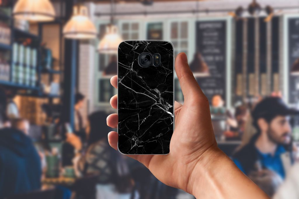 Dit design hoesje met Marmer Zwart is voor de artistieke personen onder ons. De Grieken en Romeinen wisten het materiaal al te waarderen door het in de bouw toe te passen. Naast het witte marmer met haar zacht grijze geaderde belijning zijn de diverse soorten in een gevarieerd kleurenpallet te krijgen. We hebben mooie kleuren op design hoesjes gezet, zoals in dit geval zwart marmer. Dit is een Samsung Galaxy S7 TPU Siliconen Hoesje met marmer in bruine kleur. Het marmer wordt bedrukt op de voorkant van een tpu case, die beschikt over opstaande randen aan de voorkant en heel goed combineert met een screenprotector van glas of van folie. De rijkdom aan kleuren en varianties in afwerking geeft ontwerpers de vrijheid om met marmer hele mooie architectonische projecten te realiseren. Wij hebben onze designer tevens veel vrijheid gegeven. Het resultaat zie je terug in deze tpu case met zwart marmer, die jouw smartphone goed beschermt. De zijkanten van de case worden niet bedrukt met het zwarte marmer.