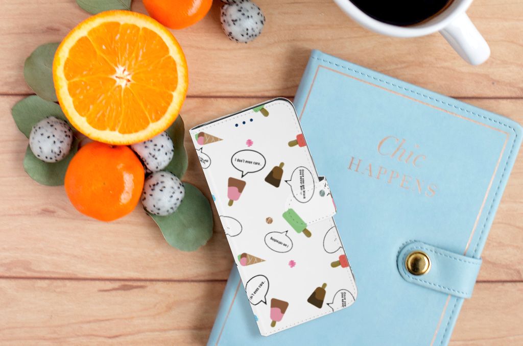 Van dit vrolijke Samsung Galaxy S8 Book Cover met daarop verschillende soorten ijsjes met tekstwolkjes krijg je sowieso een vrij en zomers gevoel. De zomer komt naar je toe met deze print van ijsjes met tekstwolkjes. Ben je op het strand, dan ontbreekt een lekker ijsje natuurlijk niet. Net zoals je je smartphone bij de hand hebt, met daaromheen een design hoesje met bijzondere ijsjes en tekstwolkjes. Jouw telefoon kan dan de bescherming in de vorm van een boekhoesje met ijsjes zeer goed gebruiken. Alle zijden van dit hoesje worden bedrukt met ijsjes en tekstwolkjes. De case heeft een lipje aan de buitenzijde voor het afsluiten van de telefoon en de houder aan de binnenzijde is van TPU. Onder alle weersomstandigheden zal deze case met verschillende opbergvakjes perfect functioneren, ook op het strand met een ijsje in je hand.