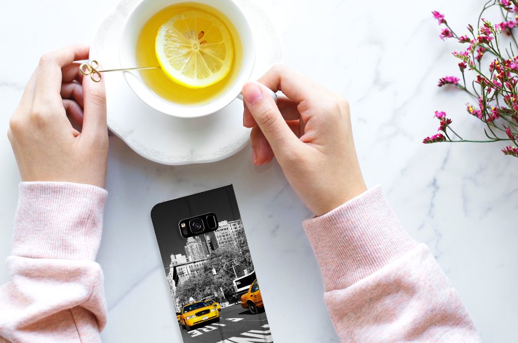 Voor de liefhebbers hebben we een design hoesje met print van New York. Om van plek A naar B te komen, nemen de meeste mensen een taxi. Omdat de taxi symbolisch is voor New York, hebben we deze ook op deze stand case gezet. Een Samsung Galaxy S8 Book Cover is ook zeer handig. Vanwege onder meer het opbergvakje aan de binnenzijde, maar ook door de magneet aan de binnenzijde. Dit is een magnetische sluiting. Een taxi nemen, is de makkelijkste manier om van de ene plek naar de andere plek in de stad New York te raken. Zorg ervoor, als je deze stad bezoekt, dat je telefoon goed is beschermd met dit stand hoesje. Een stand case wordt aan alle zijden bedrukt en de houder aan de binnenkant is van TPU. Tevens heeft de case een standaard, waarmee filmpjes kijken heel leuk is.