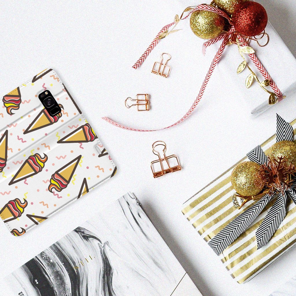 Een vrolijke Samsung Galaxy S8 Flip Style Cover met daarop verschillende ijsjes. Als je daar geen zomers gevoel meer van krijgt, weten wij het ook niet meer. De zomer en ijsjes zijn onlosmakelijk met elkaar verbonden. Tijdens een bezoekje aan het strand mag een lekker ijsje bijvoorbeeld niet ontbreken. Een design hoesje met lekkere Icecream print past daar natuurlijk ook ontzettend goed bij. Jouw telefoon is helemaal beschermd met een stand case met ijsjes design. De aankoop van deze case is een heerlijke investering, die zich gegarandeerd terugbetaalt. Alle zijden van dit hoesje worden bedrukt met ijsjes. De case heeft een speciale standaard en de houder aan de binnenzijde is van TPU. Onder alle weersomstandigheden zal deze case met opbergvakje perfect functioneren, ook in de zomer met een ijsje in je hand. Dit smaakvolle hoesje is zeer goedkoop te bestellen en wordt zeer snel bezorgd.