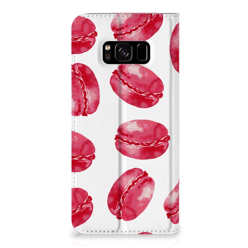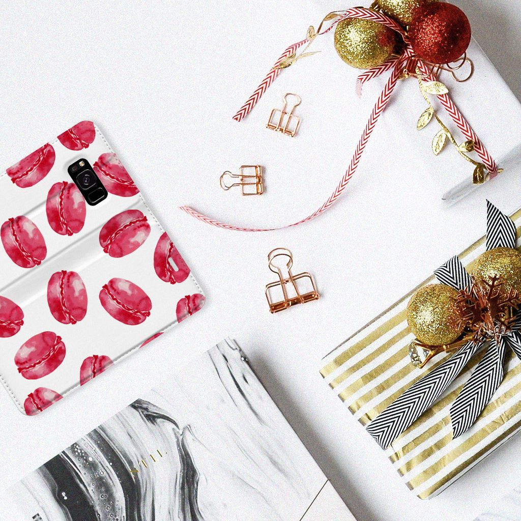 Dit stand hoesje met Pink Macarons is een zeer opvallende bescherming voor jouw smartphone. Macarons zijn Franse koekjes: kleine, rond en luchtig. Ze worden in veel verschillende smaken gemaakt, herkenbaar aan de verschillende kleuren zoals chocolade (donkerbruin), mokka (middenbruin), kersen (rood), pistache (groen), aardbei (roze), framboos (karmijn). Deze kleuren kun je net allemaal zien op dit fraaie design hoesje met roze macarons. Heb je altijd al een Samsung Galaxy S8 Flip Style Cover willen hebben met roze macarons? Grijp dan nu je kans. Deze case heeft zeer veel goede eigenschappen, zoals 1 opbergvakje en een magnetische sluiting aan de binnenkant. Dit design hoesje met roze macarons wordt aan alle zijden bedrukt. De houder aan de binnenkant van het hoesje is van TPU. De case heeft ook een handige standaard.