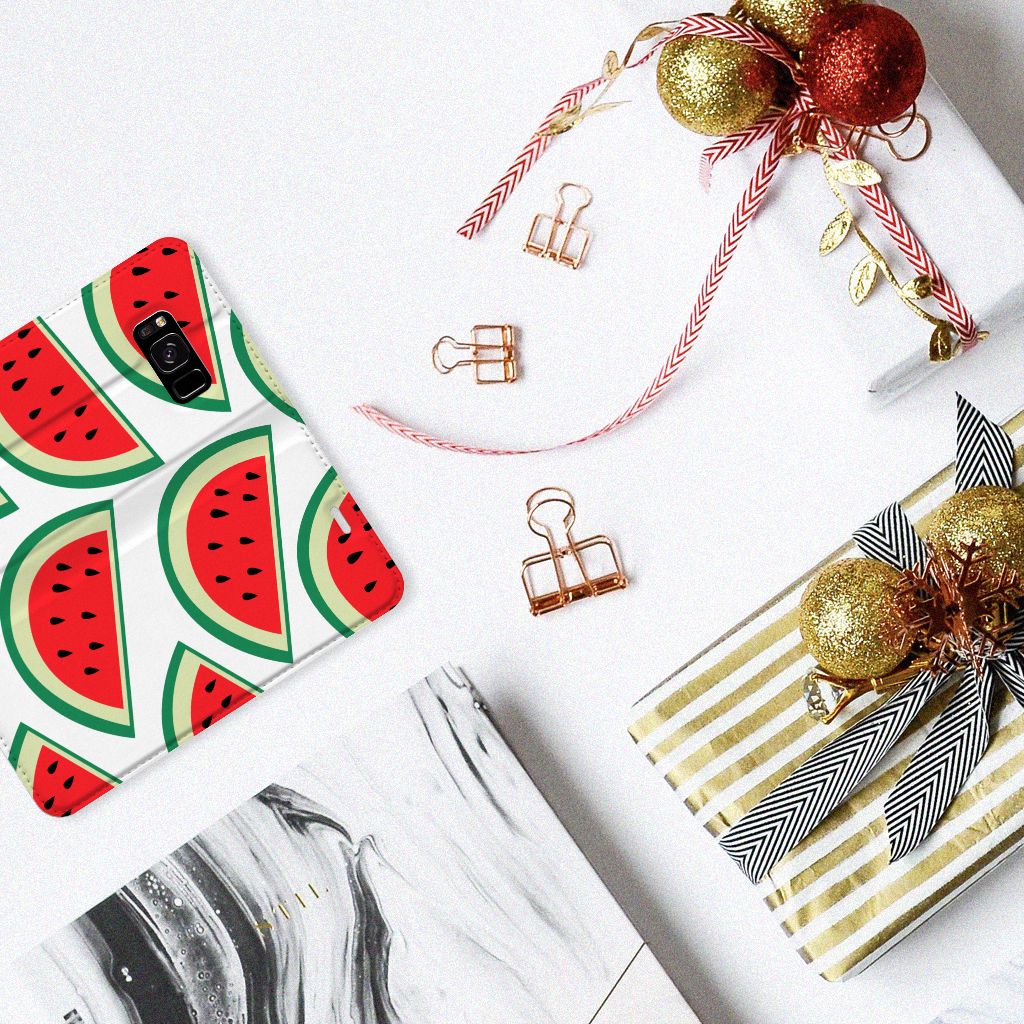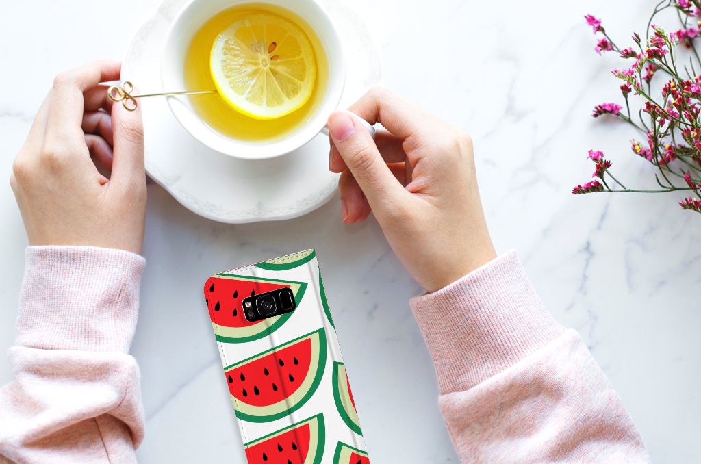 Watermeloenen zijn uitstekende dorstlessers, misschien dat je daarom juist in de zomermaanden extra enthousiast raakt van dit design hoesje Watermelons. Jij blijft gezond als je zo nu en dan een watermeloen neemt, jouw smartphone blijft in tact als je er deze Samsung Galaxy S8 Flip Style Cover omheen doet. De stand case beschermt jouw telefoon aan alle kanten en beschikt over een 1 opbergvakje en een speciale standaard. Het hoesje wordt afgesloten met een magneet aan de binnenzijde. De houder aan de binnenzijde is van TPU. Je kunt ook kiezen voor andere soorten fruit op je hoesje. Kijk maar eens naar onze andere design hoesjes op onze website.