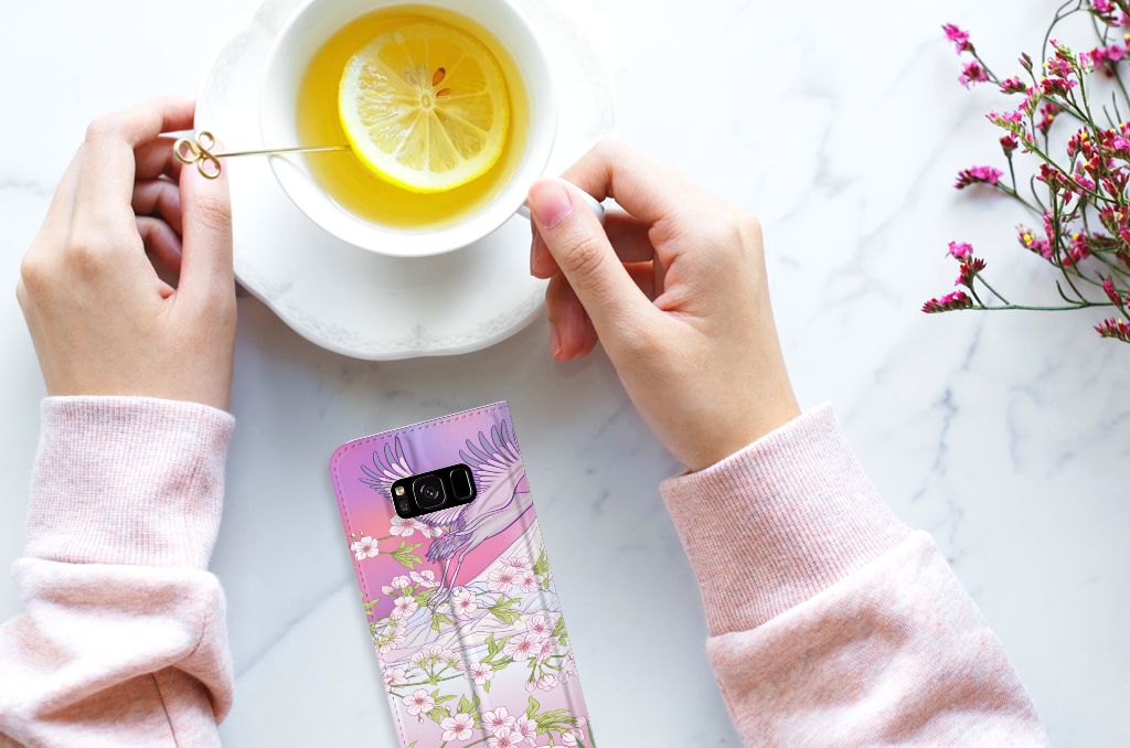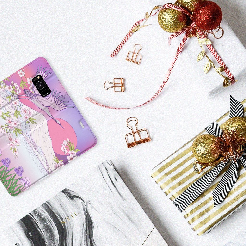 Met deze opvallende en kleurrijke Samsung Galaxy S8 Hoesje maken met Bird Flying design blijft jouw toestel in uitzonderlijke staat. Een ooievaar fleurt al sinds mensenheugenis dorpen en steden op en doet dit ook met jouw stand case. Het design hoesje met deze reigerachtige vogel in roze en paarse kleuren is een zeer goede bescherming voor je telefoon. Het spetterende stand hoesje met opvallende ooievaar beschermt jouw telefoon aan alle zijden en beschikt over een opbergvakje voor een pasje of briefgeld. De roze met paarse case sluit perfect af met de magneet aan de binnenzijde. De houder aan de binnenzijde van het schitterende stand hoesje is van TPU. Dit is ook nog eens zeer flexibel materiaal. Het pu leer aan de buitenkant oogt zeer chique. Kijk voor andere dieren op een design hoesje binnen deze fraaie collectie. Ook kun je zelf een hoesje ontwerpen met je favoriete huisdier.