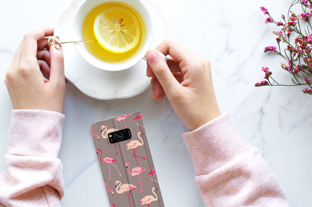 Een Samsung Galaxy S8 Hoesje maken met rode flamingo’s is in vele opzichten bijzonder. De rode flamingo op het hoesje komt oorspronkelijk uit het Caraïbische gebied. Stel dat je in deze regio vakantie viert, dan val je zonder meer op met dit hoesje met flamingo’s. Deze stand case biedt bescherming voor alle zijden van je telefoon. Jouw smartphone ligt goed opgeborgen in de TPU houder aan de binnenzijde en in dit gedeelte van het hoesje met flamingo’s zit de magnetische sluiting. De lichtroze flamingo, ook present op deze case, wordt tegenwoordig als aparte soort gezien naast de rode flamingo. De stand case met flamingo’s heeft vakjes voor pasjes en is op maat gemaakt.