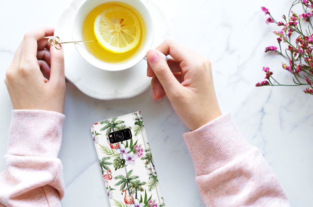 Een Samsung Galaxy S8 Hoesje maken met Flamingo Palms is in vele opzichten bijzonder. De rode flamingo op het hoesje kent zijn oorsprong in het Caraïbische gebied. Stel dat je in deze regio vakantie aan het vieren bent, dan val je zonder meer op met dit hoesje met flamingo’s en palmbomen. Dit hoesje biedt bescherming voor alle zijden van je telefoon. Jouw apparaat ligt goed opgeborgen in de TPU houder aan de binnenzijde en de buitenkant van het hoesje met flamingo’s en palmbomen heeft een magnetische sluiting. Ook de palmbomen op deze stand case geven jou natuurlijk een ultiem vakantiegevoel. Het stand hoesje met flamingo’s en palmbomen heeft een vakje voor pasjes en een standaard en is op maat gemaakt.