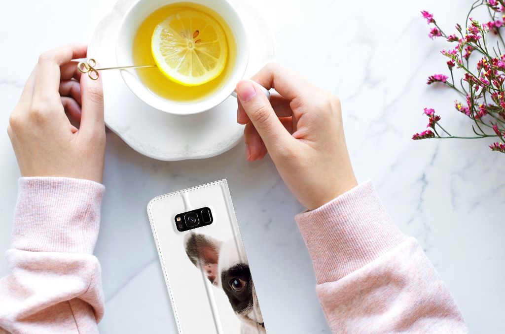 Honden zijn voor veel mensen hun lievelingsdier. Er zijn erg veel verschillende soorten honden, van allerlei verschillende rassen. We hebben een Franse bulldog op onze design hoesjes gezet. Onze smartphone hoesjes met Franse bulldog zien er zeer aandoenlijk uit. Deze Samsung Galaxy S8 Hoesje maken is niet alleen zeer praktisch vanwege het opbergvakje en de standaard, maar beschermt je smartphone ook nog eens optimaal. Op alle zijden van het design hoesje staat de Franse bulldog. De Franse bulldog is populair. Net als dit stand hoesje, dat aan de binnenzijde is voorzien van een magneet en een houder van TPU. Hij kan slecht tegen te weinig aandacht en een onvriendelijke behandeling. Verder is de Franse bulldog gebaat bij duidelijke regels. Anders kan de Franse bulldog zelf zeer onvriendelijk worden, wat je niet zou zeggen als je dit hoesje ziet.