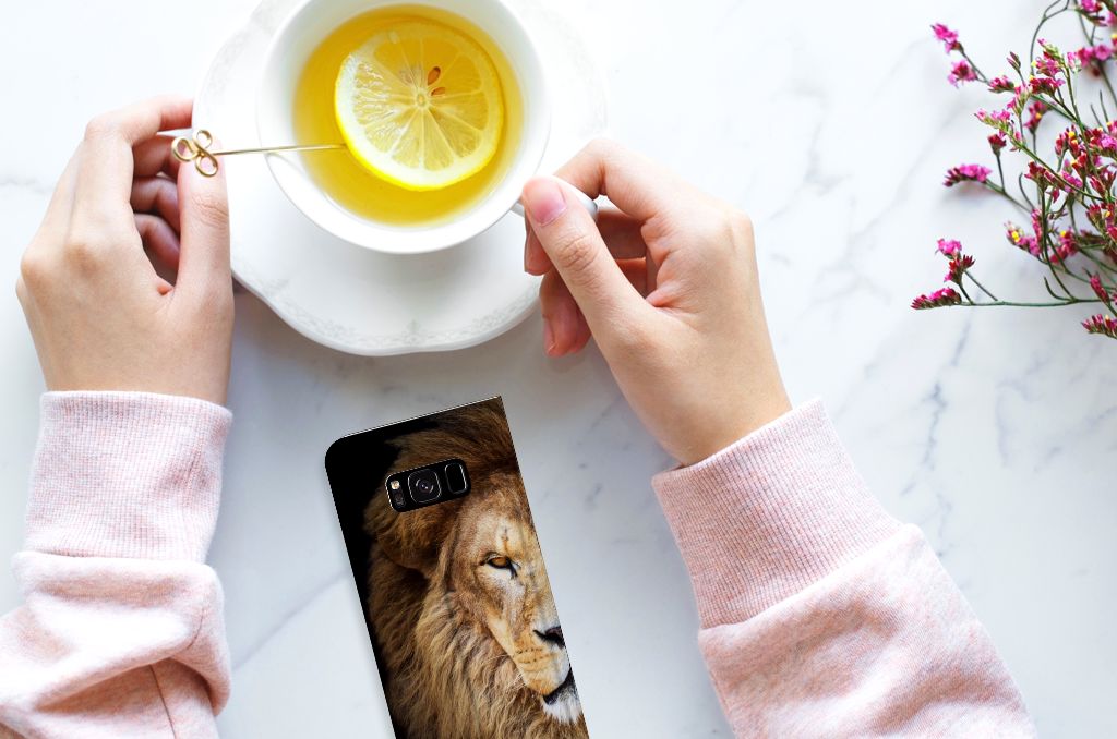 We hebben een grote verzameling katten op onze hoesjes staan, waarvan de leeuw na de tijger de grootste is. De Leeuw op het design hoesje ziet er door de indrukwekkende manen bijzonder krachtig uit. De kracht straalt ook af op deze Samsung Galaxy S8 Hoesje maken, die jouw smartphone aan alle zijden perfect beschermt. De magnetische sluiting aan de binnenkant is bijzonder handig en nuttig. Rond het begin van de jaartelling had de leeuw een veel grotere verspreiding dan nu. De afgelopen 20 jaar is het aantal leeuwen met 30 tot 50% afgenomen. Zonde natuurlijk. Dit design hoesje met leeuw zal in elk geval nooit verloren gaan. De print op deze case is zeer duurzaam. Jouw smartphone past perfect in de houder van TPU aan de binnenzijde, waarin je ook een pasje kunt stoppen. Verder heeft de case een standaard.