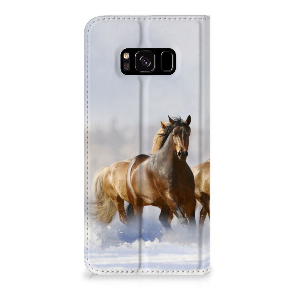 Voor de paardenliefhebbers onder ons hebben we onze collectie uitgebreid met dit design hoesje met print van paarden. Vroeger hield de mens vooral werkpaarden, inmiddels hebben we vriendschap gesloten met het paard. Vandaar dat het ook een favoriet dier is op onze smartphonehoesjes, zoals deze stand cases. Deze Samsung Galaxy S8 Hoesje maken met Paarden is niet alleen super mooi en chique, het sluit ook nog perfect dankzij de magneet aan de binnenzijde. Verder heeft de case een TPU houder aan de binnenzijde en een houder voor een pasje. Zie je liever je eigen paard terug op een hoesje? Dat kan! Door zelf een uniek hoesje te ontwerpen, met eigen foto’s en teksten. De stand case met paarden wordt aan alle zijden bedrukt.