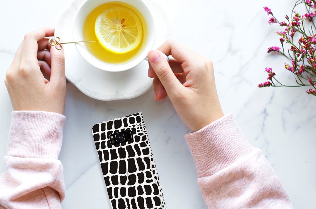 Deze stand case met zwarte en witte Slangenprint kunnen wij zeer exclusief noemen. Zeker als je er nog een bijzondere tekst van jezelf aan toevoegt, zoals je eigen naam in een sierletter. Jouw stand case krijgt dan een persoonlijke uitstraling, net nog een beetje specialer dan dit hoesje met zwarte en witte slangenprint. Wat niets afdoet van de exclusiviteit van deze stand case met zwarte en witte slangenprint. Ben jij toe aan een stoer en opvallend Samsung Galaxy S8 Hoesje maken? Pak dan dit design met print van slangenhuid als basis. Het stand hoesje met zwarte en witte slangenprint is van PU-leer (buitenzijde) en TPU (binnenzijde) en beschikt over een houder en een standaard. Verder is dit stand hoesje met slangenprint voorzien van een magnetische sluiting aan de binnenkant. Jij bent ervan verzekerd dat jouw smartphone tegen een stootje kan met dit stand hoesje met zwarte en witte slangenprint.