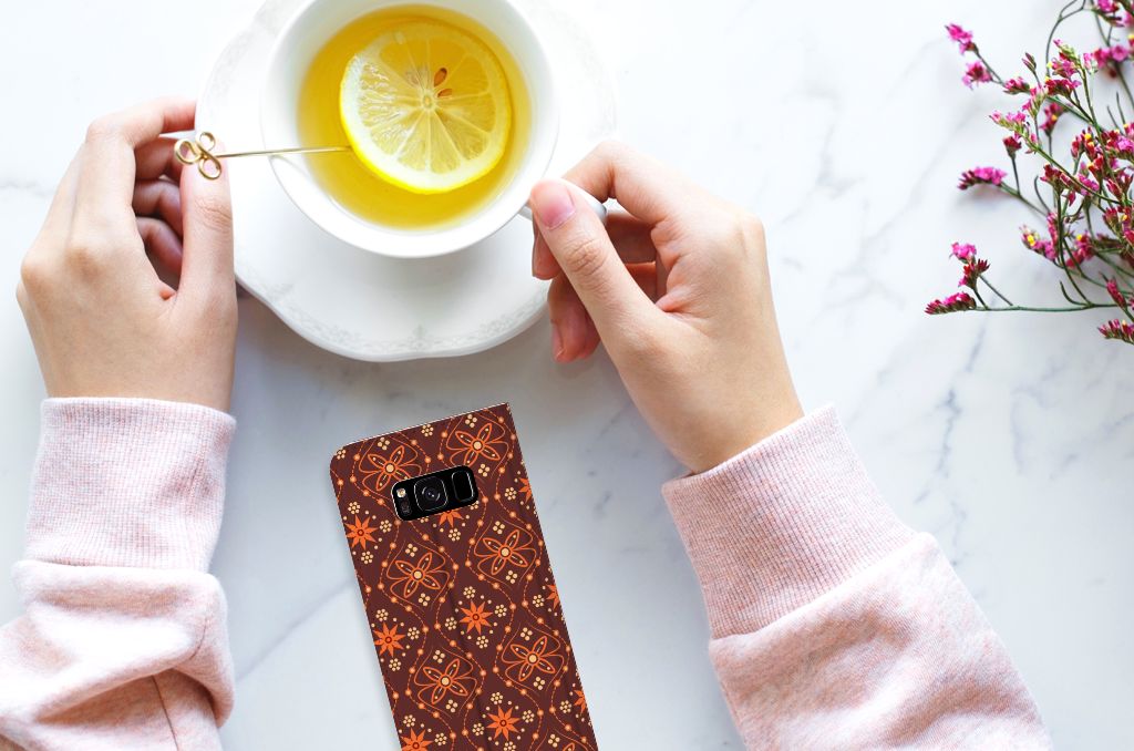 Batikken is een super oude kunstvorm. Met deze methode wordt een geweven stof met verf versierd. Er zijn zulke stoffen gevonden in het Midden-Oosten en Azië van meer dan tweeduizend jaar oud. Wie had kunnen bedenken dat we zo’n mooie batik-print duizenden jaren later zelfs op telefoonhoesjes zouden terugvinden? Dit Hoesje met Magneet in voor je Samsung Galaxy S8 heeft een prachtig symmetrisch patroon. Door de bruine en oranje kleuren doet het design een beetje retro aan en is het toch subtiel te noemen. Het hoesje heeft binnenin één vakje voor een pasje en een magnetische sluiting aan de binnenkant. Verder heeft de Batik brown-hoes een houder van TPU. Het leuke van een standcase is dat je hem eenvoudig neer kunt zetten. Zo heb je je handen vrij als je bijvoorbeeld een video wilt kijken op je smartphone.