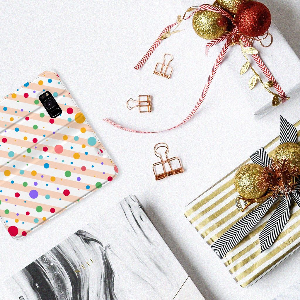 Een Samsung Galaxy S8 Hoesje met Magneet met verschillende kleuren stippen is een schitterende bescherming van jouw smartphone. De stand case met het design Dots in alle kleuren van de regenboog komt voor jou als geroepen. Maak je geen gebruik van dit zeer mooie hoesje, dan kan het met jouw smartphone een beetje beroerd aflopen. Dit mooie stand hoesje met verschillende kleuren stippen zorgt voor een volledige bescherming van je smartphone en wordt aan alle zijden bedrukt. Dankzij de speciale standaard kun je rustig achteroverleunend filmpjes bekijken terwijl je je handen vrij hebt. Verder is de houder aan de binnenzijde van TPU. Jouw telefoon is dus zeer goed opgeborgen en kan geen kant op. Met een hoesje met stippen in verschillende kleuren op alle zijden blijft jouw telefoon volledig in tact. Heb je liever een stand case met stippen in andere opvallende kleuren? Ontwerp dan zelf case met je eigen foto’s en teksten!