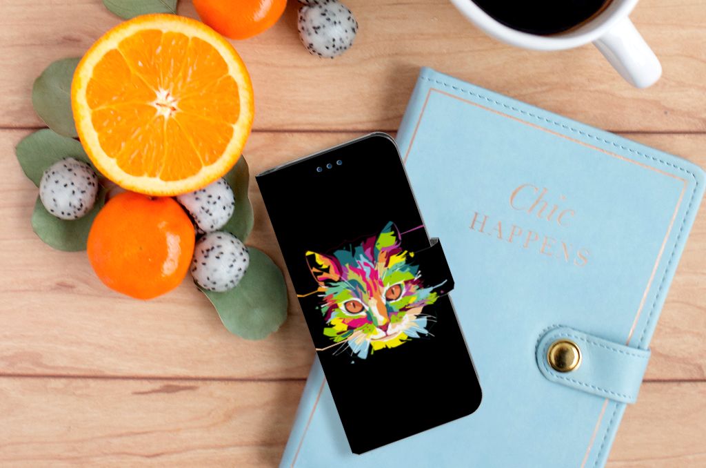 Als jij van katten houdt en op zoek bent naar een uniek hoesje, dan is dit het hoesje wat je wilt hebben. Op de voorkant van dit Leuk Hoesje vind je namelijk een mooie afbeelding van een kat in alle kleuren van de regenboog op een zwarte klassieke achtergrond. Naast dat het een mooi hoesje betreft, is het ook nog eens ontzettend handig. Zo kun je in deze bookcase wel twee á drie pasjes en briefgeld kwijt. Hiermee kun je jouw belangrijkste bezittingen op een plek bewaren in het boekhoesje en kun je jouw portemonnee voortaan thuislaten. Een bookcase heeft daarnaast ook nog het voordeel dat jouw telefoon aan alle zijdes wordt beschermd in dit leuke hoesje, dubbel zo handig dus!