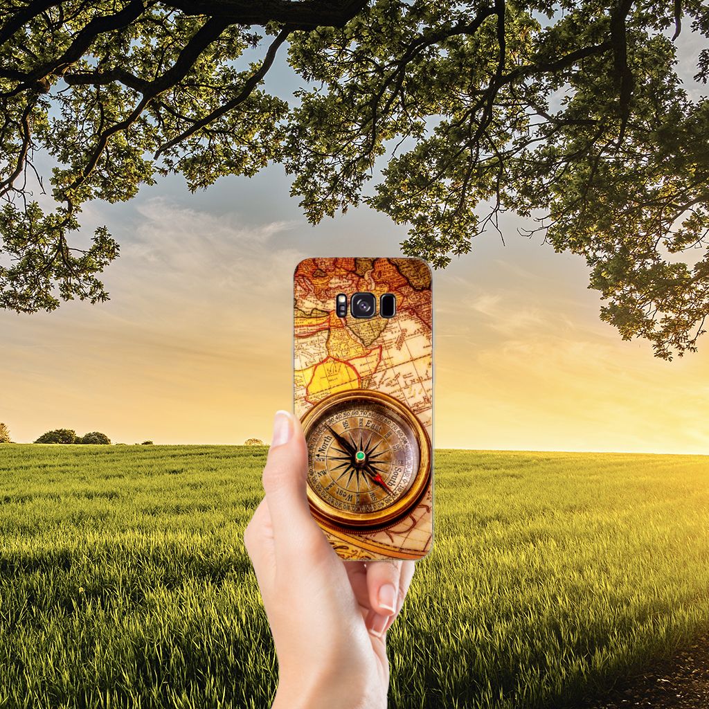 Met deze Samsung Galaxy S8 Plus Siliconen Back Cover met opdruk van een Kompas kun jij veilig elke richting op die je wilt, zonder dat je smartphone schade oploopt. Erg handig. Een kompas werkt overigens met magnetisme. Dat betekent dat een kompas af gaat wijken als die te dicht in de buurt van metaal of een andere magnetische bron komt. Deze tpu case met kompas heeft geen magneet omdat alleen de achterkant en zijkanten maximaal worden beschermd. Onze tpu cases met het beeld van een kompas bieden zeer goede bescherming en zijn heel praktisch, wat blijkt uit onder meer uit de flexibiliteit. Het kompas komt op de bovenkant van de case te staan, de zijkanten blijven transparant. Op deze tpu case kun je trouwens ook in no time zelf foto’s en teksten zetten. Ontwerp bijvoorbeeld eens een hoesje met je eigen vakantiefoto’s.