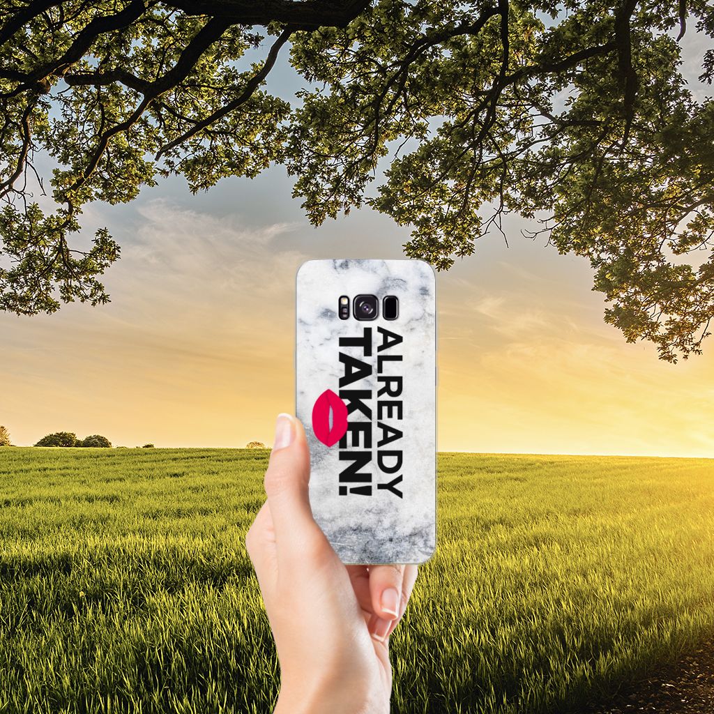 Stel dat je opdringende vrouwen of mannen van je af wil schudden op het moment dat je aan het feesten bent, omdat je al een partner hebt. Dan kun je dat met dit hoesje uitstekend duidelijk maken. Je Samsung Galaxy S8 Plus neem je waarschijnlijk vaak ter hand, dus dan zal de boodschap als je over dit hoesje beschikt zeker weten overkomen. Ook in het openbaar vervoer zal dit hoesje ervoor zorgen dat je minder snel versierd wordt door het andere geslacht. Als je vrijgezel bent en op zoek naar gezelschap, dan kun je beter kiezen voor een ander hoesje uit ons ruime en gevarieerde assortiment. Het design Already Taken White staat op een Siliconen hoesje met naam. Dit hoesje wordt alleen aan de bovenkant bedrukt en is zeer flexibel. De randen van het hoesje blijven transparant.
