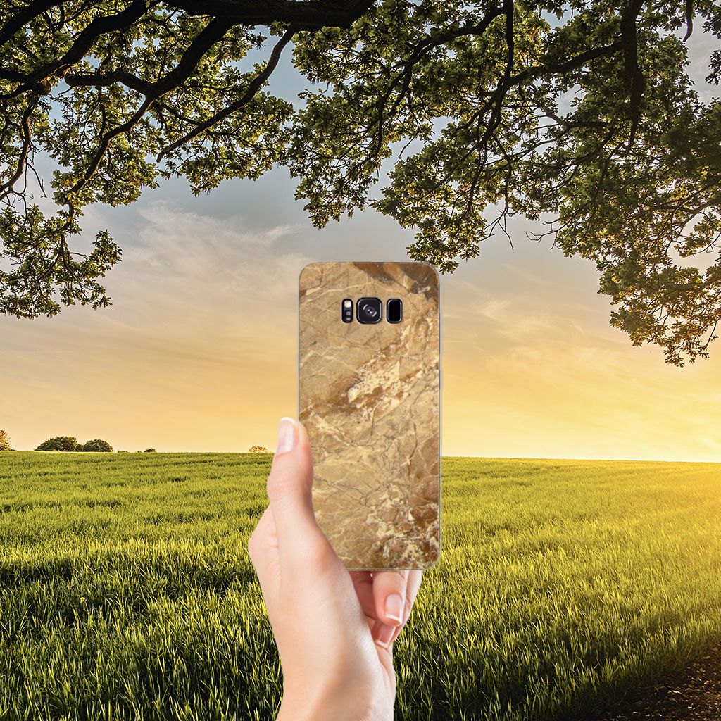 Dit design hoesje met Marmer in lichtbruine kleur is voor de artistiekelingen onder ons. De Grieken en Romeinen wisten het marmer al te waarderen door het in de bouw toe te passen. Naast het witte marmer zijn de diverse soorten marmer in een gevarieerde kleurensamenstelling te krijgen. We hebben verschillende mooie kleuren op design hoesjes gezet, zoals in dit geval het lichtbruine marmer. Dit is een Samsung Galaxy S8 Plus TPU Siliconen Hoesje met marmer in lichtbruine kleur. Het marmer wordt bedrukt op de voorkant van een tpu case, die beschikt over opstaande randen aan de voorkant en heel goed combineert met een screenprotector van glas of van folie. Door de rijkdom aan kleuren en varianties in afwerking kunnen ontwerpers met marmer schitterende architectonische projecten realiseren. Wij hebben hetzelfde gedaan en onze ontwerper veel vrijheid geboden. Het resultaat zie je terug in deze tpu case met lichtbruin marmer, die jouw smartphone goed beschermt. De zijkanten van de case worden niet bedrukt met het lichtbruine marmer.