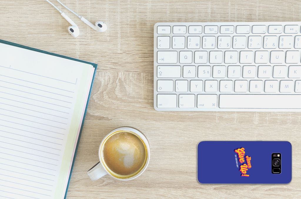 Ben je op zoek naar een uniek telefoonhoesje voor je Samsung Galaxy S8? Dan ben je bij B2C Telecom aan het juiste adres! Speciaal voor jou hebben we dit prachtige Never Give Up design in onze collectie hoesjes opgenomen. Het design wordt bedrukt op een Siliconen hoesje met naam en is gemaakt van flexibel rubber. Het design wordt alleen aan de bovenkant van het hoesje bedrukt en de randen blijven transparant. Aan de zijkanten zijn uitsparingen gemaakt waardoor je met gemak alle knoppen en poorten kunt bedienen. Wij adviseren om dit hoesje in combinatie met een screenprotector te gebruiken voor een langere levensduur van je telefoon. Wil je dit design hoesje nog iets extra's geven? Voeg dan gratis je naam of een quote toe! Is dit design hoesje toch niet helemaal wat je zocht? Ontwerp dan zelf een hoesje in ons ontwerpprogramma.