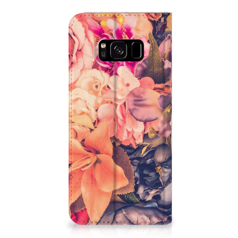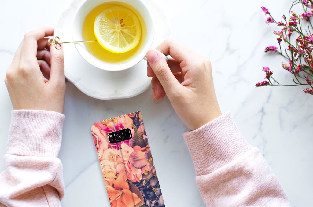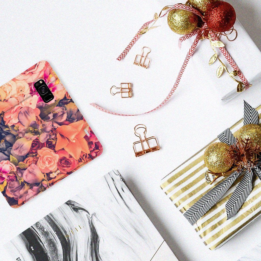 Dit Bosje Bloemen doet een mens en zijn smartphone goed. De oranje, paarse en roze bloemen op deze Samsung Galaxy S8 Smart Cover geven jouw smartphone een zeer sierlijke uitstraling. Je wordt er ook meteen vrolijker van als je aan het appen, mailen of aan het bellen bent. Valt dan je telefoon op de grond, dan zal er dankzij de stand case met oranje, paarse en roze bloemen geen schade ontstaan. Onze stand cases met oranje, paarse en roze bloemen bieden de allerbeste bescherming en zijn heel praktisch, wat blijkt uit onder meer het vakje aan de binnenkant en de handige standaard waarmee je de smartphone rechtop op tafel neer kunt zetten. De oranje, paarse en roze bloemen passen goed op alle zijden van de case. Op deze stand case van leer en TPU (houder aan de binnenkant) is het ook mogelijk je eigen ontwerp te zetten. In no time maak je zelf een stand case met daarop foto’s van jouw favoriete bloemen.