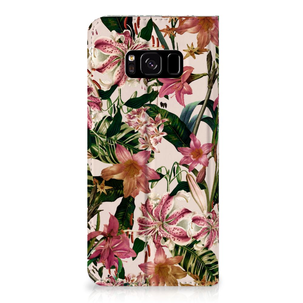 Dit Flowers design is een zegen voor de mens en zijn smartphone. De paarswitte bloemen en groene bladeren op deze Samsung Galaxy S8 Smart Cover geven jouw smartphone een zeer sierlijke uitstraling. Je krijgt er meteen een goed gevoel bij als je aan het appen, mailen of aan het bellen bent. Valt dan je telefoon op de grond, dan zal er dankzij de stand case met paarswitte bloemen en groene bladeren geen schade ontstaan. Onze stand cases met paarswitte bloemen en groene bladeren bieden de allerbeste bescherming en zijn heel praktisch, wat blijkt uit onder meer het vakje aan de binnenkant en de handige standaard waarmee je de smartphone rechtop op tafel neer kunt zetten. De paarswitte bloemen en groene bladeren komen op alle zijden van de case te staan. Op deze stand case van leer en TPU (houder aan de binnenkant) kun je in no time zelf foto’s van jouw favoriete bloemen zetten.