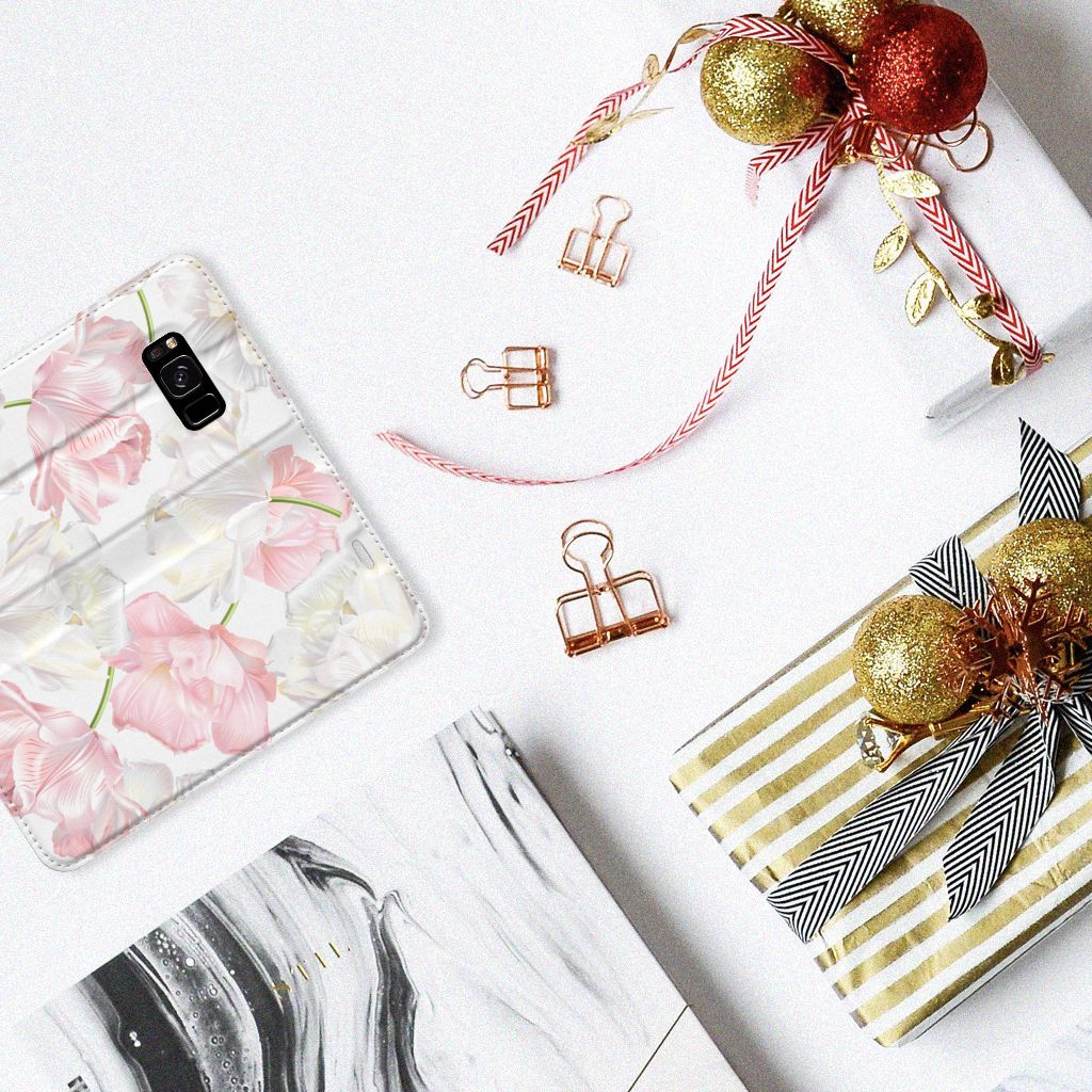 Een bosje bloemen doet een mens (en zijn smartphone) goed. De witte en roze bloemen op dit Samsung Galaxy S8 Smart Cover geven jouw smartphone een zeer mooie uitstraling. Je wordt er ook meteen een stuk rustiger van als je aan het appen of aan het bellen bent. Valt dan je telefoon op de grond, dan zal er dankzij de stand case met het design Lovely Flowers ontstaan. Onze stand cases met roze en witte bloemen zien er zeer prettig uit en zijn heel praktisch, wat blijkt uit onder meer het vakje aan de binnenkant en de handige standaard waarmee je de smartphone rechtop op tafel neer kunt zetten. De roze en witte bloemen passen goed op alle zijden van de case. Op deze stand case van leer en TPU (houder aan de binnenkant) kun je trouwens ook je eigen bloemige ontwerp zetten. In een paar simpele stappen maak je zelf een stand hoesje met daarop jouw mooiste bloemen.