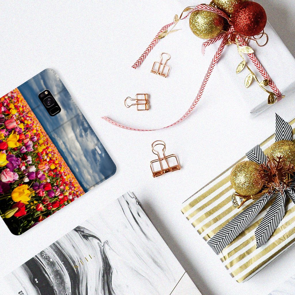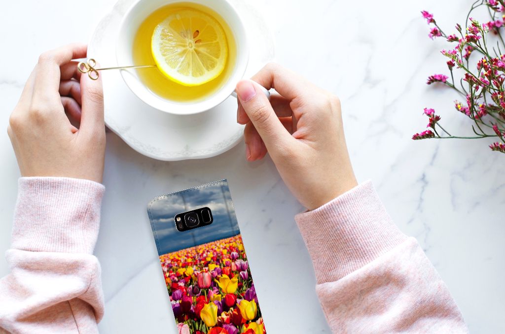 De tulp is een oer-Nederlandse bloem en heeft een lange geschiedenis. Deze Samsung Galaxy S8 Smart Cover met Tulpen ziet er bijzonder kleurrijk uit. Dit fleurige smartphone hoesje geeft een bijzondere bescherming van jouw apparaat. Tulpen zijn ideaal voor een kleurrijk begin van het tuinseizoen. Iedereen wordt er vrolijk van om te zien hoe deze bloemen het voorjaar kleur geven en het begin van de warmere tijd van het jaar aankondigen. Dan kan het toch niet anders of jij wordt heel erg blij van deze stand case met tulpen? Deze populaire stand case heeft ruimte voor een pasje of briefgeld aan de binnenzijde en wordt magnetisch afgesloten. De houder aan de binnenkant is van TPU en de case wordt aan alle zijden bedrukt met tulpen. Je kunt ook zelf een stand case maken met daarop jouw favoriete bloemen.