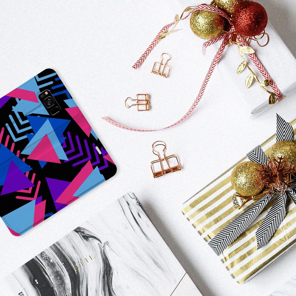 Dit fraaie hoesje met het design Funky Triangle is alles behalve eenvoudig en sober. Dat komt goed uit, want je hebt natuurlijk ook geen doorsnee telefoon gekocht. Mocht je dat wel hebben gedaan, dan wordt hij meteen speciaal als je een Samsung Galaxy S8 Stand Case koopt voor een spotprijsje. Een ding is zeker: opvallen ga je beslist met dit hoesje met paarse, roze en blauwe driehoeken. Jij zult in je element zijn met dit design hoesje met paarse, roze en blauwe driehoeken, omdat het er schitterend uitziet en jouw telefoon perfect beschermt. Het smartphonehoesje beschermt jouw telefoon aan alle zijden en beschikt over 1 opbergvakje en een speciale standaard. Het hoesje wordt afgesloten met een magneet aan de binnenzijde. De houder aan de binnenzijde is van TPU. Alle zijden van de stand case worden bedrukt. De paarse, roze en blauwe driehoeken maken de case helemaal af.