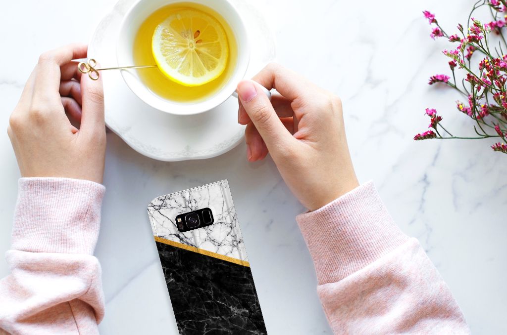 Dit design hoesje met zwartwit marmer is zeer geschikt voor jouw kostbare telefoon. Vanwege zijn prachtige lichtval en vastheid is marmer zeer gewild als bouwmateriaal. Op jouw smartphone kun je lange tijd bouwen als jij kiest voor deze hele mooie Samsung Galaxy S8 Standcase. Naast het zwart-witte marmer zijn er de diverse marmersoorten in een ruim kleurenpallet te krijgen. Deze stand case met marmer in zwart-wit wordt bedrukt op alle zijden. De case beschikt over een vakje voor een pasje en toebehoren en een magnetische sluiting aan de binnenzijde. Verder heeft de case in zwart wit marmer een houder van TPU. Wij hebben onze designer veel vrijheid gegeven met het ontwerpen dit mooie hoesje. Het resultaat zie je terug in deze stand case met zwartwit marmer, dat de ideale bescherming is voor jouw smartphone.