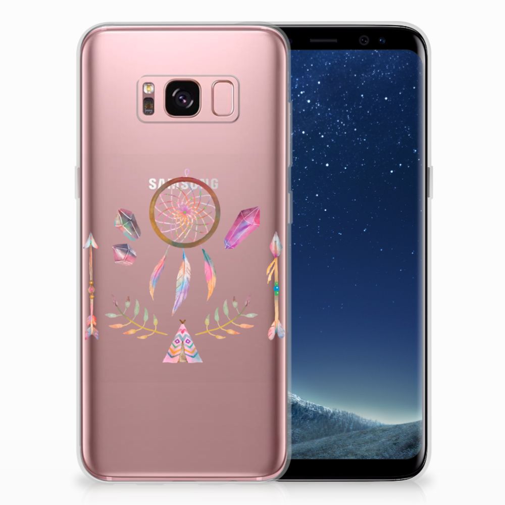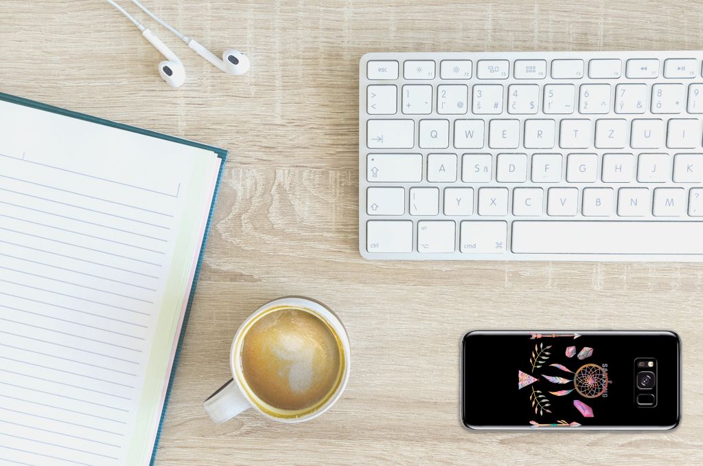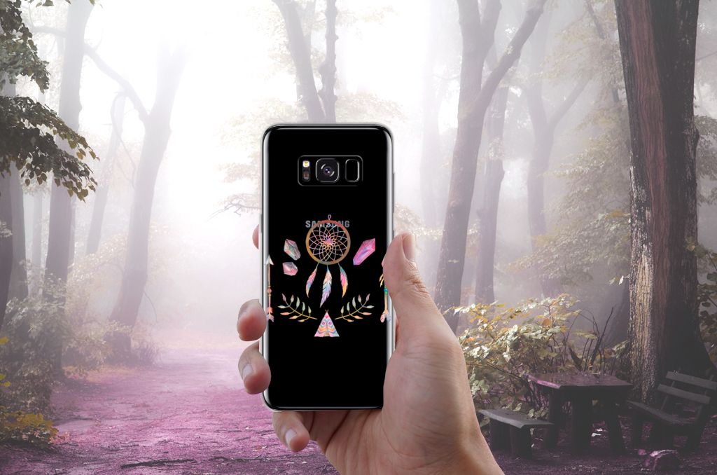 Een dromenvanger werd lang geleden al door een indianenvolk in Noord-Amerika gebruikt om nare dromen te weren. Nu nog hangen mensen over de hele wereld dromenvangers boven hun bed. Maar ook op een telefoonhoesje staat zo’n boho dreamcatcher heel mooi. Dit mooie design dat bestaat uit een tipi, pijlen en dromenvanger heeft veel verschillende prachtige kleuren. Maar omdat het ontwerp minimalistisch en klein is, is het design toch subtiel te noemen. Dit ontwerp staat op een Telefoonhoesje met Naam voor je Samsung Galaxy S8. TPU is flexibel en heel erg sterk. Zo is je telefoon aan de achterkant en de randen heel goed beschermd. De case is aan de bovenkant bedrukt, de randen blijven transparant. Het TPU-hoesje is perfect te combineren met een screenprotector, zo zijn je telefoon en je beeldscherm altijd goed beschermd.