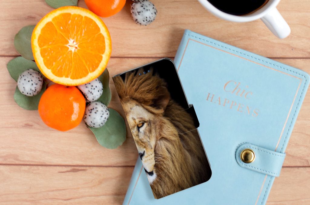 Samsung Galaxy S8 Telefoonhoesje met Pasjes en met magnetische sluitclip Leeuw