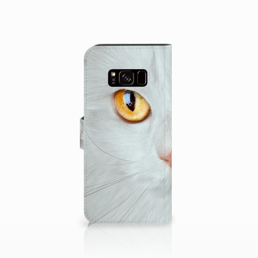 Samsung Galaxy S8 Telefoonhoesje met magnetisch lipje als sluiting Witte Kat