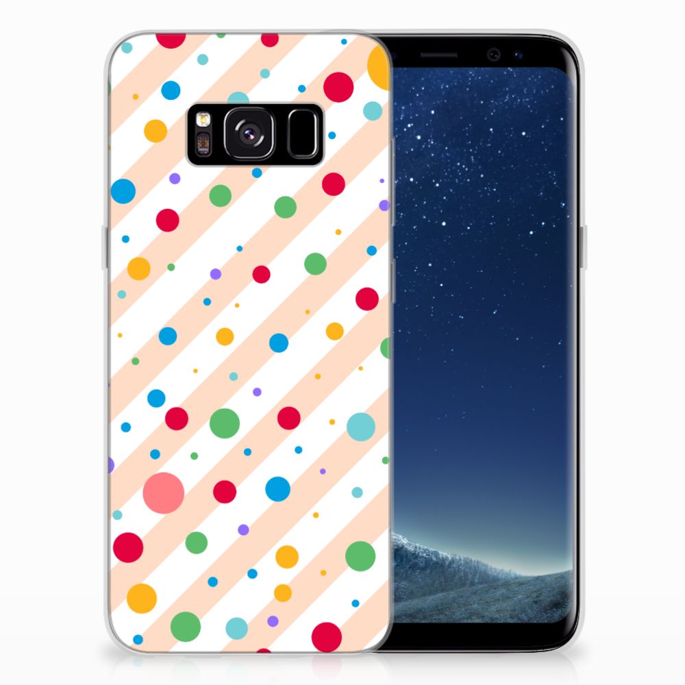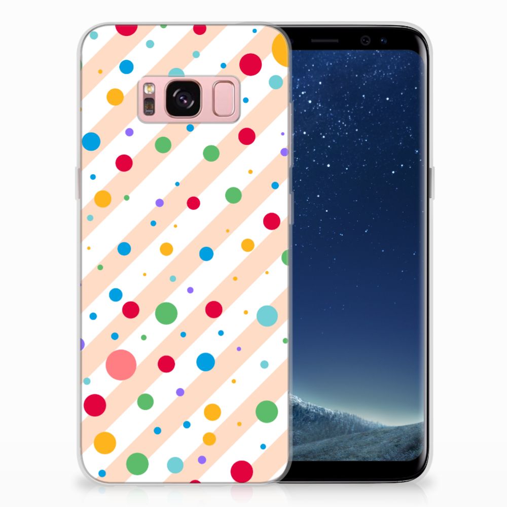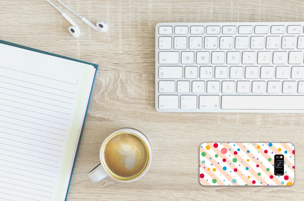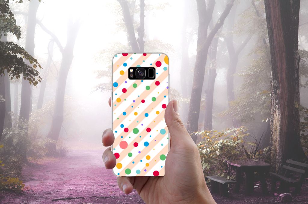 Een Samsung Galaxy S8 TPU bumper met verschillende kleuren stippen is een schitterende bescherming van jouw smartphone. De tpu case met het design Dots in alle kleuren van de regenboog komt voor jou als geroepen. Maak je geen gebruik van dit zeer mooie hoesje, dan kan het met jouw smartphone een beetje beroerd aflopen. Deze mooie tpu case met verschillende soorten klompen in verschillende kleuren is zo’n beetje de meest flexibele case die er bestaat. Het hoesje met stippen zorgt voor een goede bescherming van je smartphone, vooral aan de achterzijde en zijkanten. Met een tpu hoesje met stippen in verschillende kleuren blijft jouw gsm volledig in tact. Heb je liever een tpu case met stippen in andere opvallende kleuren? Ontwerp dan zelf een tpu case met je eigen foto’s en teksten! De case wordt aan de achterzijde bedrukt met klompen, de zijkanten blijven doorzichtig.