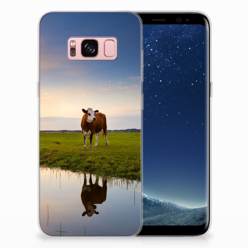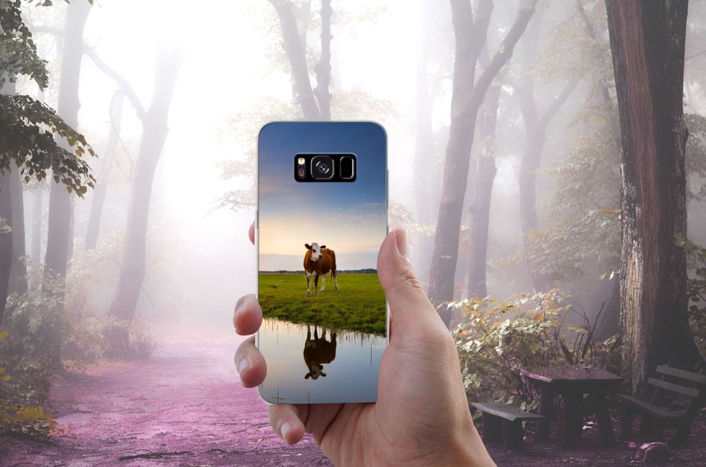 Het levert een idyllisch plaatje op, dit hoesje met een koe en ondergaande zon op de achtergrond. Door een koe buiten te laten lopen en grazen, hebben ze minder kans om ziek te worden. De Koe graast het liefst met soortgenoten, al zijn deze een stukje van de koe op de case verwijderd. Dit levert ook een mooi plaatje op, zoals je kunt zien op dit design hoesje. Dit tpu hoesje met koeien ziet er flexibel uit en is voorzien van alle uitsparingen. Een Samsung Galaxy S8 TPU Hoesje met koeien beschermt jouw smartphone vooral aan de achterkant en zijkanten. De zijkanten blijven transparant, de rest van het hoesje is bedrukt. Koeien herkauwen het liefst liggend, behalve wanneer het regent. Zo goed als grazen voelt voor koeien, zo duurzaam zal jouw smartphone blijven met dit design hoesje. Het TPU is schokabsorberend en niet te breken. De TPU case past altijd in je broekzak.