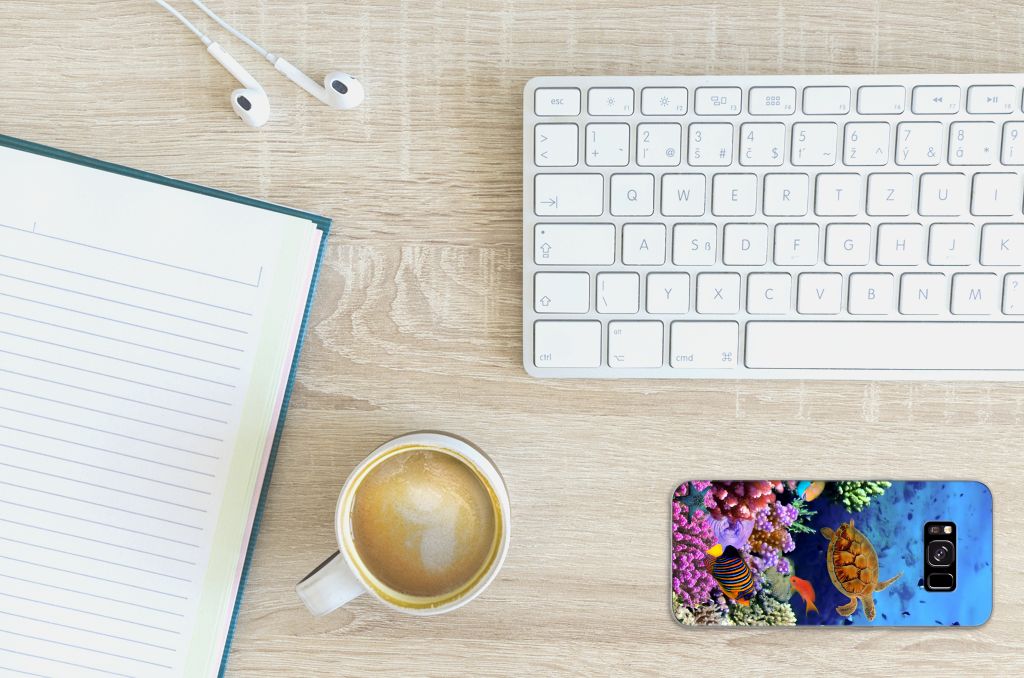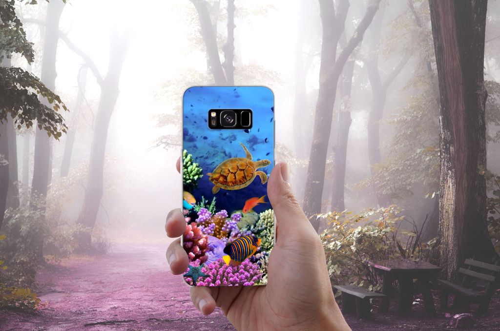 Dit kleurrijke hoesje met tropische Vissen is een ware eyecatcher. Als je aan het duiken bent en je treft een school aan met dit soort opvallende vissen, dan heb je een geweldige ervaring. Maar je hoeft er eigenlijk niet per se het water voor in te duiken. Want wij hebben een schitterende verzameling vissen op dit design hoesje gezet. Met onze zeer geavanceerde printer zetten we de afbeelding van vissen op de bovenkant van de Samsung Galaxy S8 TPU Hoesje, de randen blijven transparant. De case is gemaakt van zeer elastisch en onbreekbaar materiaal. Verder is je telefoon natuurlijk goed beschermd met deze tpu case met print van vissen. Deze case heeft tevens opstaande randen, waardoor je scherm de grond niet zal raken als de smartphone uit je handen valt.