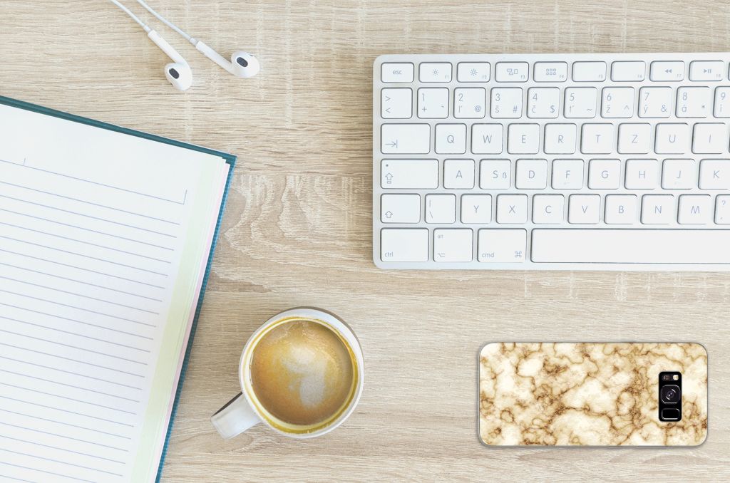 Deze Samsung Galaxy S8 TPU Siliconen Hoesje met Marmer Goud is het waard om een blokje voor om te rijden. Dit is overigens niet nodig. Als je het hoesje met goud marmer nu bestelt heb je het zeer snel in huis. Je kunt er bij wijze van spreken thuis op gaan zitten wachten. Je hebt diverse soorten marmer. We hebben enkele fraaie kleuren op onze hoesjes gezet, zoals in dit geval het gouden marmer. Het goud marmer wordt bedrukt op de achterkant van de tpu case, die beschikt over alle nodige uitsparingen waardoor je alle knoppen en poorten van je smartphone kunt bedienen. Verder is de case met goud marmer gemaakt van zeer flexibel materiaal. De rijkheid aan kleuren en varianties in afwerking is een schitterende eigenschap van marmer. Dit tpu hoesje met goud marmer heeft ook veel schitterende eigenschappen en is de ideale bescherming voor jouw smartphone.