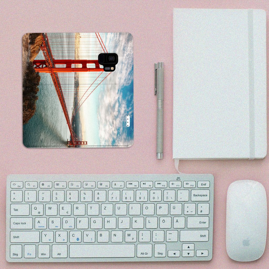 De Golden Gate Bridge is een technisch meesterwerk. Een van de langste en hoogste hangbruggen ter wereld is een schitterend staaltje van ingenieurskunst en een prachtig monument, dat met de rode kleur fel afsteekt tegen de omgeving. Dit monument komt op een fraaie manier tot uitdrukking op deze Samsung Galaxy S9 Book Cover. Het telefoonhoesje met design heeft 1 opbergvakje, waarin je een pasje of briefgeld kunt stoppen. Jouw telefoon past precies in de houder van TPU en de case wordt aan de binnenzijde magnetisch afgesloten. De Golden Gate Bridge is vanuit vele plekken in en rond San Francisco op een spectaculaire manier zichtbaar. Alle kanten van het telefoonhoesje worden bedrukt met foto’s van dit monument. Jouw telefoon is aan alle kanten goed beschermd met dit design hoesje met Golden Bridge print.