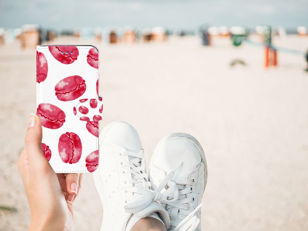 Dit hoesje met Pink Macarons is een zeer opvallende bescherming voor jouw smartphone. Macarons zijn Franse koekjes: kleine, rond en luchtig. Ze worden in veel verschillende smaken gemaakt, herkenbaar aan de verschillende kleuren zoals chocolade (donkerbruin), mokka (middenbruin), kersen (rood), pistache (groen), aardbei (roze), framboos (karmijn). Deze kleuren kun je niet allemaal zien op dit fraaie design hoesje met roze macarons. Heb je altijd al een Samsung Galaxy S9 Book Cover willen hebben met roze macarons? Grijp dan nu je kans. Een boekhoesje heeft zeer veel goede eigenschappen, zoals opbergvakjes aan de binnenkant en een magnetische sluiting in de vorm van een lipje aan de buitenzijde. Dit design hoesje met roze macarons wordt aan alle zijden bedrukt, zelfs het lipje krijgt een afbeelding van een roze macaron. De houder aan de binnenkant van het hoesje is van TPU.