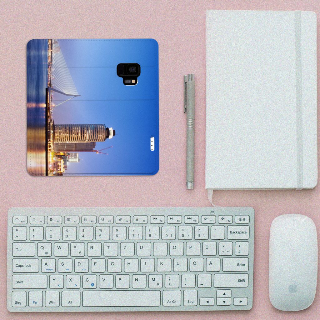 Een hoesje met de Rotterdamse skyline is niet alleen voor de plaatselijke inwoners een bijzonderheid. Ook jij zult glimmen van trots wanneer het gaat over jouw stand case met de Rotterdamse skyline. Sinds 1975 zijn hoogbouw en Rotterdam onlosmakelijk met elkaar verbonden. Dat zie je duidelijk terug als je dit smartphone hoesje koopt. Een Samsung Galaxy S9 Book Cover is zeer praktisch dankzij het opbergvakje aan de binnenzijde en de magnetische sluiting en beschermt jouw smartphone aan alle zijden. Dankzij het platte Hollandsche landschap zie je de Rotterdamse binnenstad vanuit verschillende posities liggen. Beloon jezelf en je telefoon met dit mooi Rotterdamse stand hoesje. De case heeft een houder van TPU, waar jouw telefoon precies in past.