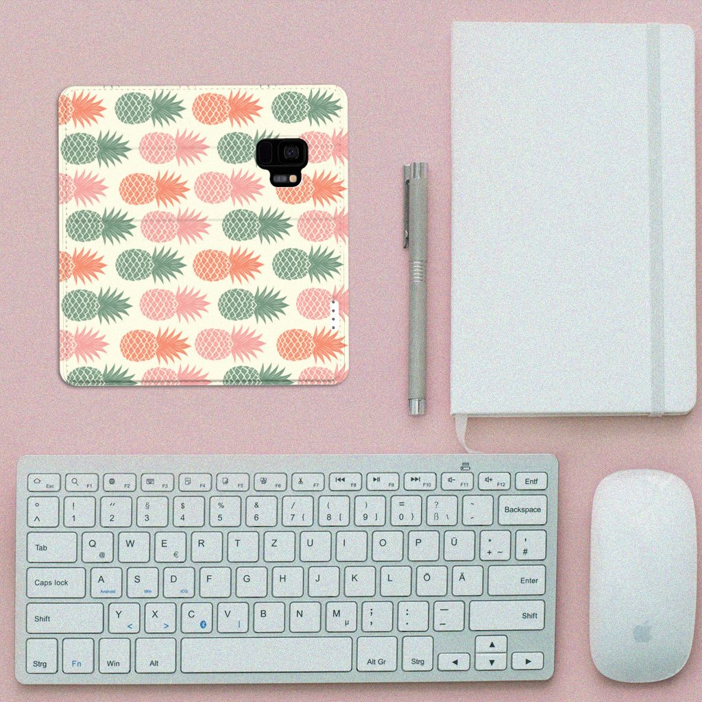 Ananas is een woord uit het Tupi, de taal van de Tupi-indianen, en betekent uitmuntende vrucht. Dit fruit van zeer hoge kwaliteit staat op onze superieure boekhoesjes, stand cases, hard cases en TPU cases. Jij blijft er gezond uitzien als je zo nu en dan een hap neemt van een Ananas , jouw smartphone blijft tip top in orde als je er een leuk telefoonhoesje omheen doet. Een ananas heeft stevig, veerkrachtig vruchtvlees. Een beetje te vergelijken met het TPU in onze hoesjes. TPU is elastisch materiaal, dat zeer buigzaam is. Vandaar dat het zeer schokbestendig is. Het ananas design staat op een stand case. Deze Samsung Galaxy S9 Flip Style Cover beschermt jouw telefoon aan alle kanten en beschikt over een 1 opbergvakje en een speciale standaard. Het hoesje wordt afgesloten met een magneet aan de binnenzijde. De houder aan de binnenzijde is van TPU.