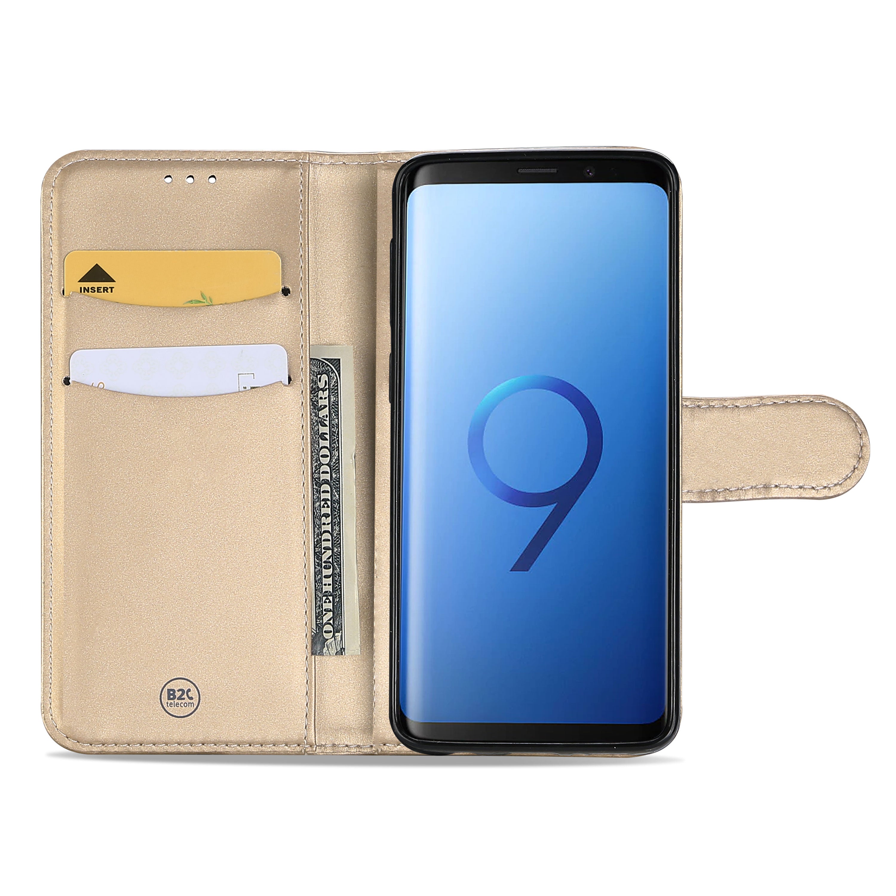 Samsung Galaxy S9 Hoesje Goud met Flexibele Houder. Ben je op zoek naar een hoesje met een strakke uitstraling, zonder allerlei poespas zoals hippe afbeeldingen en teksten? Dan is dit ontzettend handige boekhoesje wellicht iets voor jou. Met dit telefoonhoesje kun jij iedereen met vertrouwen tegemoet treden. De uitstraling van dit hoesje is zeer luxe en elegant. Hier zorgt onder meer het fraai gekleurde PU-leer aan de buitenzijde voor. De binnenkant van het hoesje beschikt over twee houders waarin je pasjes zoals je rijbewijs en je creditcard kwijt kunt en een apart opbergvakje voor je briefgeld. Wie heeft er nog een portemonnee nodig als je over dit praktische hoesje kunt beschikken? Het boekhoesje zorgt er bovendien voor dat je telefoon aan alle zijden perfect beschermd is. De hoes is voorzien van alle nodige uitsparingen, zodat je zelfs kunt bellen terwijl deze is afgesloten met het lipje aan de buitenzijde. Jouw telefoon is veilig opgeborgen in dit multifunctionele smartphonehoesje! Verkrijgbaar in verschillende kleuren.