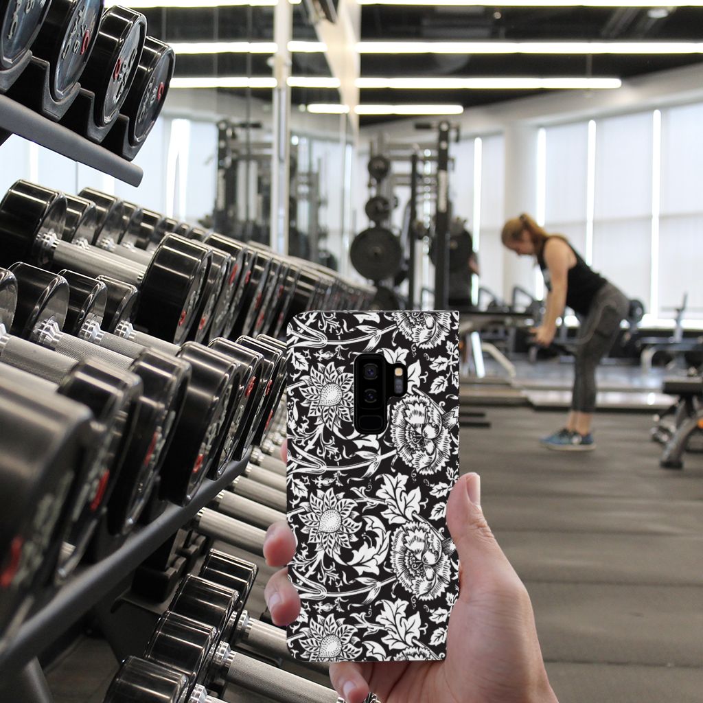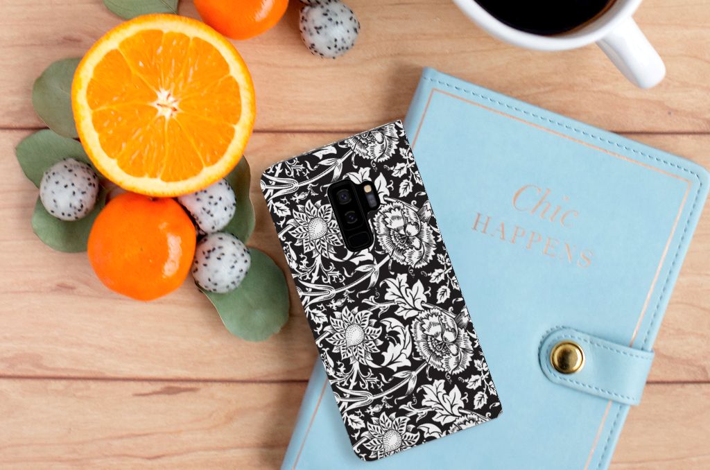 Bloemen raken nooit uit de mode! Een mooie bloemenprint op je telefoonhoesje dus ook niet. Dit ontwerp met mooie, enigszins abstracte bloemen is perfect voor de liefhebber van bloemen die geen felgekleurd hoesje wil. Vanwege de zwarte achtergrond en de witte bloemen heb je toch een opvallend en uniek design in handen. Dit black flowers-ontwerp staat op een Smart Cover voor je Samsung Galaxy S9 Plus. Dit populaire smartphonehoesje met het beton-design heeft één vakje voor een pasje of briefgeld en is aan alle zijden bedrukt. Met de standcase zet je je telefoon gemakkelijk neer, zodat je je handen vrij hebt als je bijvoorbeeld een video wilt kijken. De binnenkant van de standcase is van grijs PU-leer. Dat is fijn, omdat je daardoor niet snel vlekken ziet op je hoesje.