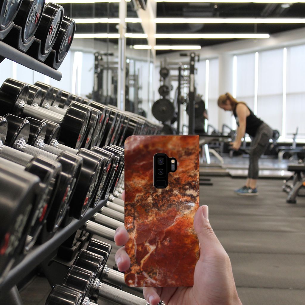 Dit design hoesje met Marmer Bruin is voor de artistieke personen onder ons. De Grieken en Romeinen wisten het al te waarderen door het als bouw- en bekledingsmateriaal toe te passen. Naast het witte Carrara marmer met haar zacht grijze geaderde belijning zijn de diverse soorten in een ruim kleurenpallet te krijgen. We hebben verschillende kleuren op design hoesjes gezet, zoals in dit geval bruin marmer. Dit is een Samsung Galaxy S9 Plus Standcase met marmer in bruine kleur. Het marmer wordt bedrukt op alle zijden van een stand case, die beschikt over 1 vakje voor een pasje en een magnetische sluiting aan de binnenkant. Verder heeft de case een houder van TPU. De rijkheid aan kleuren en varianties in afwerking geeft ontwerpers de vrijheid om met marmer hele mooie architectonische projecten te realiseren. Wij hebben onze ontwerper ook veel vrijheid gegeven. Het resultaat zie je terug in deze stand case met bruin marmer, dat de ideale bescherming voor jouw smartphone biedt.