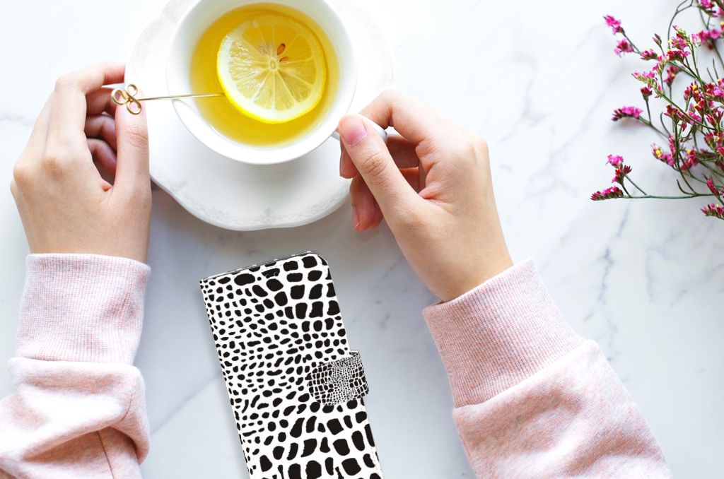 De reguliere slangenprint heb je waarschijnlijk al vaker gezien, maar heb je ooit een slangenprint in zwart en wit gezien? Doordat de slangenprint nu in het zwart en wit staat, ziet jouw Samsung Galaxy S9 Plus Telefoonhoesje met Pasjes er nog exclusiever uit. Ook het model, een boekhoesje, ziet er exclusief uit. Maar behalve dat het er exclusief uitziet, is het ook heel praktisch. Je kunt in dit design hoesje namelijk 2 á 3 pasjes en wat briefgeld kwijt. Zo heb je al jouw waardevolle spullen veilig op dezelfde plek en kun je het niet kwijtraken. Dat scheelt weer een hoop gedoe als je een keer boodschappen gaat doen of op stap gaat. Je kunt jouw portemonnee lekker thuislaten.