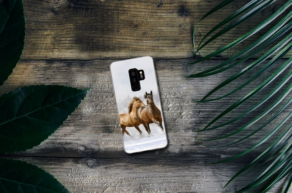 Voor de paardenliefhebbers onder ons hebben we onze collectie uitgebreid met dit design hoesje met print van paarden. Vroeger hield de mens vooral werkpaarden, inmiddels hebben we vriendschap gesloten met het paard. Vandaar dat het ook een favoriet dier is op onze smartphonehoesjes, zoals deze tpu case. Een TPU Hoesje voor de Samsung Galaxy S9 Plus met Paarden is niet alleen super mooi en chique, maar ook nog eens zeer flexibel. Verder is de case schokabsorberend en heeft het opstaande randen. Zie je liever je eigen paard terug op een hoesje. Dat kan! Door zelf een uniek hoesje te ontwerpen, met eigen foto’s en teksten. De TPU case wordt aan de bovenzijde bedrukt, de zijkanten blijven transparant.