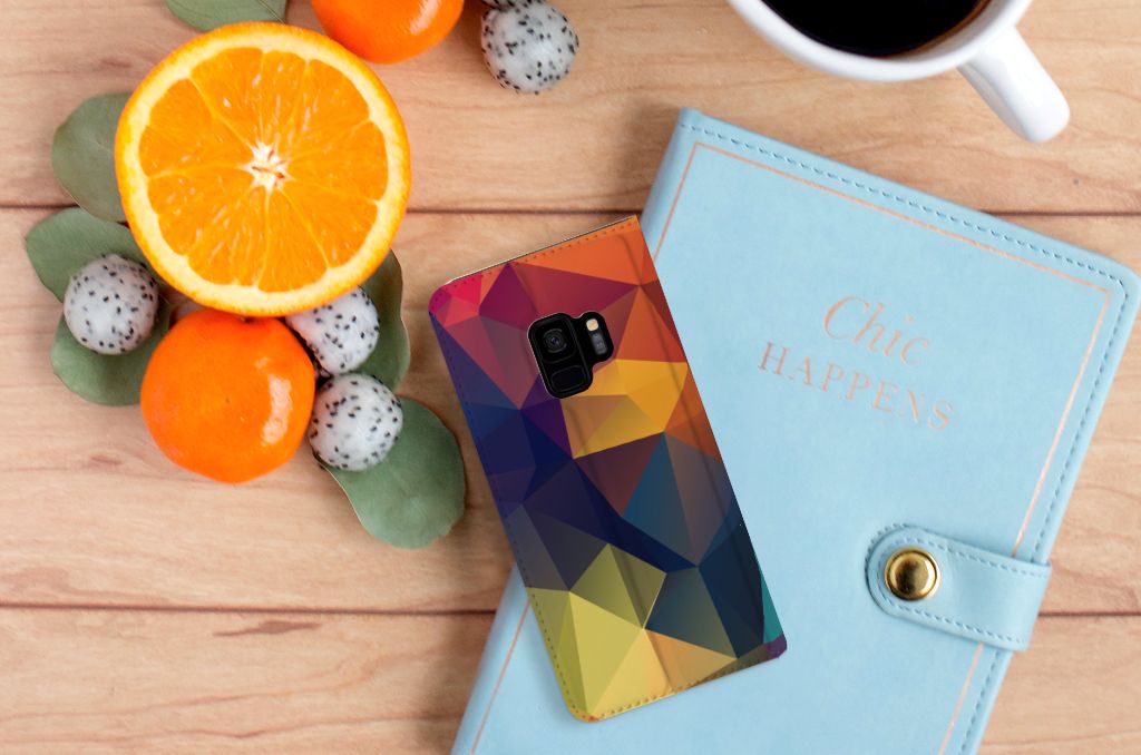Veelkleurige driehoeken die samen eindeloze asymmetrische patronen lijken te vormen. Het is het abstracte schouwspel dat op dit fraaie hoesje voor je Samsung Galaxy S9 direct de aandacht trekt noemen we voor het gemak trekt noemen we voor het gemak Polygon Color. De een ziet er een berglandschap in, de ander piramides. Wat zie jij erin? Zeker is in elk geval dat de aanblik van dit fascinerende ontwerp je niet snel gaat vervelen. Het kleurige spel van lijnen en vlakken blijft eindeloos boeien en geeft jouw Stand Case een hippe en kunstzinnige uitstraling. De kracht die het lijnenspel uitstraalt, komt ook terug in het hoesje zelf. De solide hoes van PU-leer beschikt ook over een 1 pashouder en een speciale standaard. Het hoesje wordt afgesloten met een magneet aan de binnenzijde. De houder aan de binnenzijde is van TPU. Alle zijden worden bedrukt.