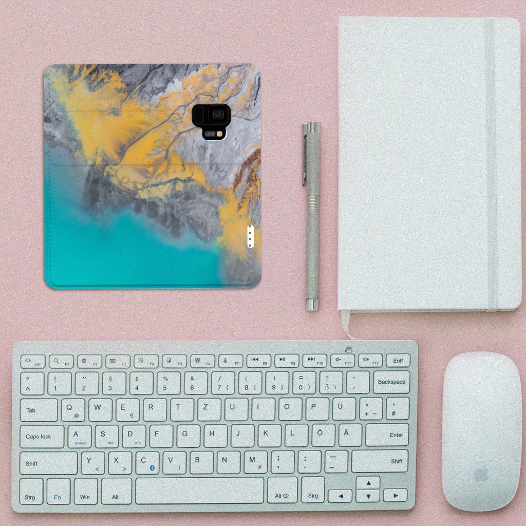 Deze Samsung Galaxy S9 Standcase met Marble Blue Gold is het waard om een blokje voor om te fietsen. Dit is echter helemaal niet nodig. Als je het hoesje met marmer blauw met goud nu bestelt heb je het supersnel in huis. Je kunt er bij wijze van spreken voor de brievenbus op blijven wachten. Je hebt diverse marmersoorten in veel verschillende kleuren. We hebben enkele mooie kleuren op design hoesjes gezet, zoals in dit geval marmer blauw met goud. Het marmer wordt bedrukt op alle zijden van de stand case, die beschikt over een vakje voor pasjes of briefgeld en een magnetische sluiting aan de binnenzijde. Verder heeft de case met marmer blauw met goud een houder van TPU. De rijkheid aan kleuren en variaties in afwerking is een fraaie eigenschap van marmer. Dit stand hoesje met marmer blauw met goud heeft ook veel schitterende eigenschappen en is de ideale bescherming voor jouw smartphone.