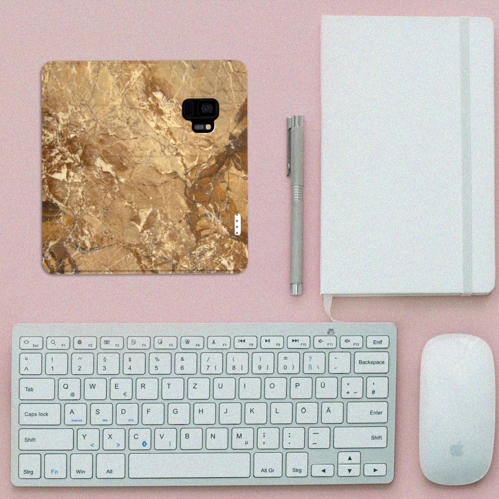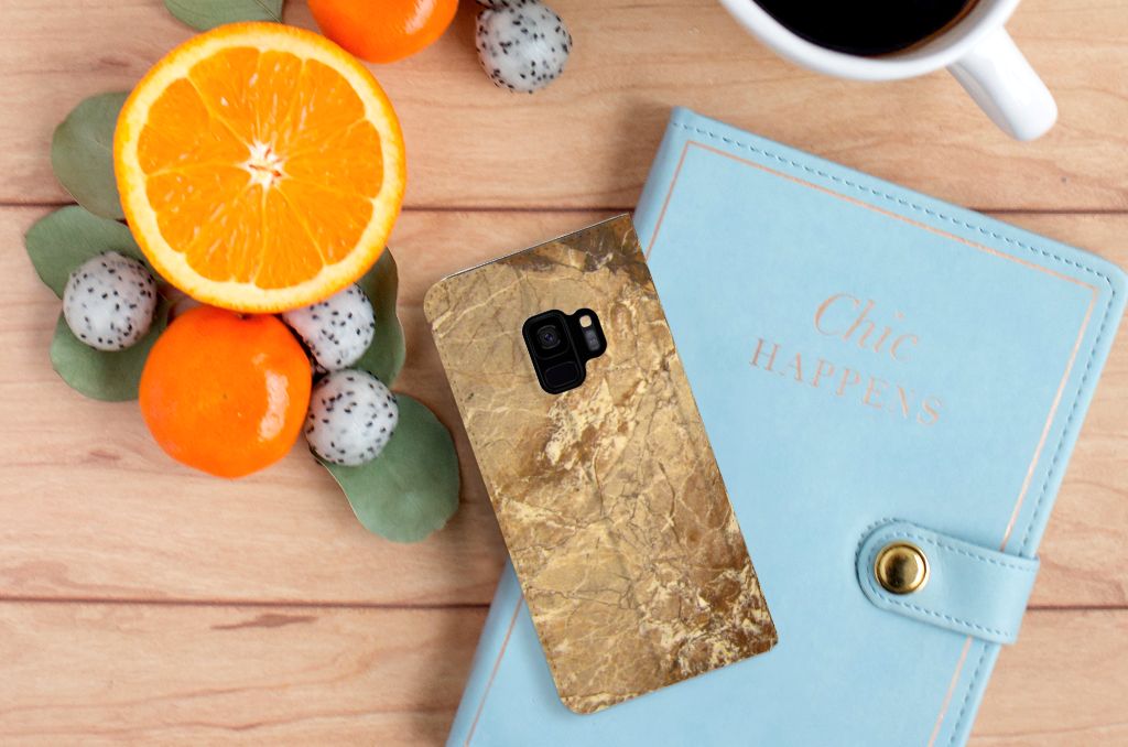Dit design hoesje met Marmer in lichtbruine kleur is voor de artistiekelingen onder ons. De Grieken en Romeinen wisten het marmer al te waarderen door het in de bouw toe te passen. Naast het witte marmer zijn de diverse soorten marmer in een gevarieerde kleurensamenstelling te krijgen. We hebben verschillende mooie kleuren op design hoesjes gezet, zoals in dit geval het lichtbruine marmer. Dit is een Samsung Galaxy S9 Standcase met marmer in lichtbruine kleur. Het marmer wordt bedrukt op alle zijden van een stand case, die beschikt over 1 vakje voor een pasje en een magnetische sluiting aan de binnenzijde. Verder heeft de hoes een houder van TPU. Door de rijkdom aan kleuren en varianties in afwerking kunnen ontwerpers met marmer schitterende architectonische projecten realiseren. Wij hebben hetzelfde gedaan en onze ontwerper veel vrijheid geboden. Het resultaat zie je terug in deze stand case met lichtbruin marmer, dat de ideale bescherming voor jouw smartphone is.
