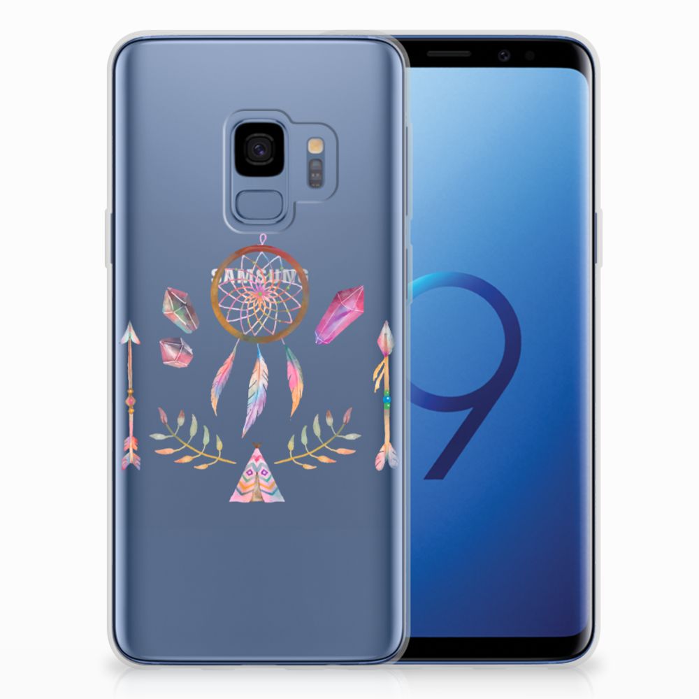 Een dromenvanger werd lang geleden al door een indianenvolk in Noord-Amerika gebruikt om nare dromen te weren. Nu nog hangen mensen over de hele wereld dromenvangers boven hun bed. Maar ook op een telefoonhoesje staat zo’n boho dreamcatcher heel mooi. Dit mooie design dat bestaat uit een tipi, pijlen en dromenvanger heeft veel verschillende prachtige kleuren. Maar omdat het ontwerp minimalistisch en klein is, is het design toch subtiel te noemen. Dit ontwerp staat op een Telefoonhoesje met Naam voor je Samsung Galaxy S9. TPU is flexibel en heel erg sterk. Zo is je telefoon aan de achterkant en de randen heel goed beschermd. De case is aan de bovenkant bedrukt, de randen blijven transparant. Het TPU-hoesje is perfect te combineren met een screenprotector, zo zijn je telefoon en je beeldscherm altijd goed beschermd.