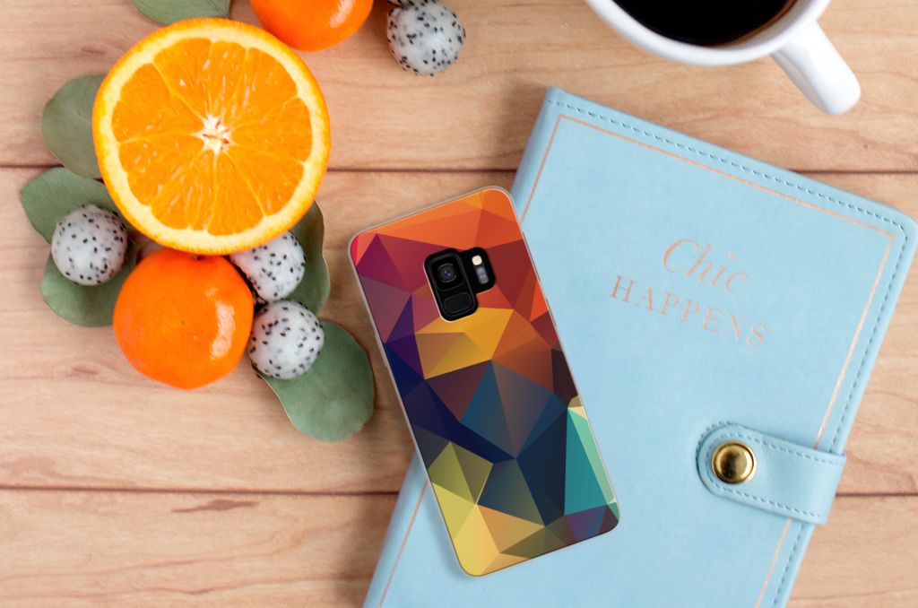 Veelkleurige driehoeken die samen eindeloze asymmetrische patronen lijken te vormen. Het is het abstracte schouwspel dat op dit fraaie hoesje voor je Samsung Galaxy S9 direct de aandacht trekt noemen we voor het gemak trekt noemen we voor het gemak Polygon Color. De een ziet er een berglandschap in, de ander piramides. Wat zie jij erin? Zeker is in elk geval dat de aanblik van dit fascinerende ontwerp je niet snel gaat vervelen. Het kleurige spel van lijnen en vlakken blijft eindeloos boeien en geeft jouw TPU Hoesje een hippe en kunstzinnige uitstraling. De kracht die het lijnenspel uitstraalt, komt ook terug in het hoesje zelf. Dit hoesje wordt alleen aan de bovenkant bedrukt en is zeer flexibel. De randen van het hoesje blijven transparant. Wat wil je nog meer?