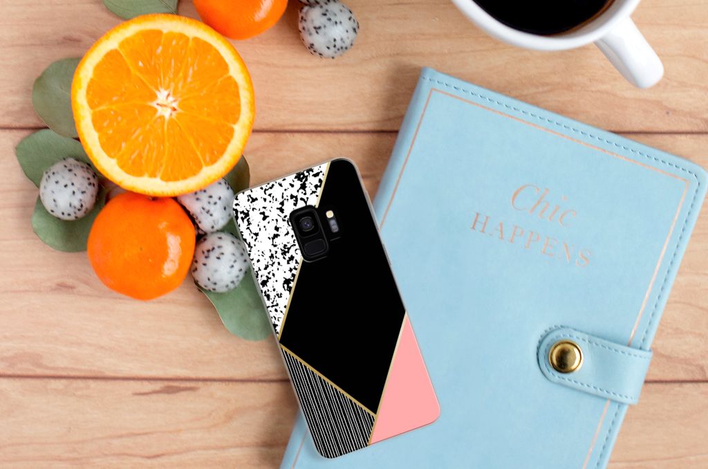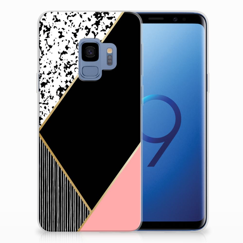 TPU Hoesje Samsung Galaxy S9 Zwart Roze Vormen Design